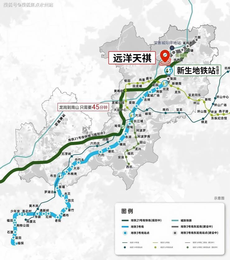 地铁:距离3号线东延线(2025年通车)新生站仅约500 米,未来可通过该站换乘21号线(规划中)和深惠城轨(2026年通车),30 分钟直达福田、南山等核心区域。