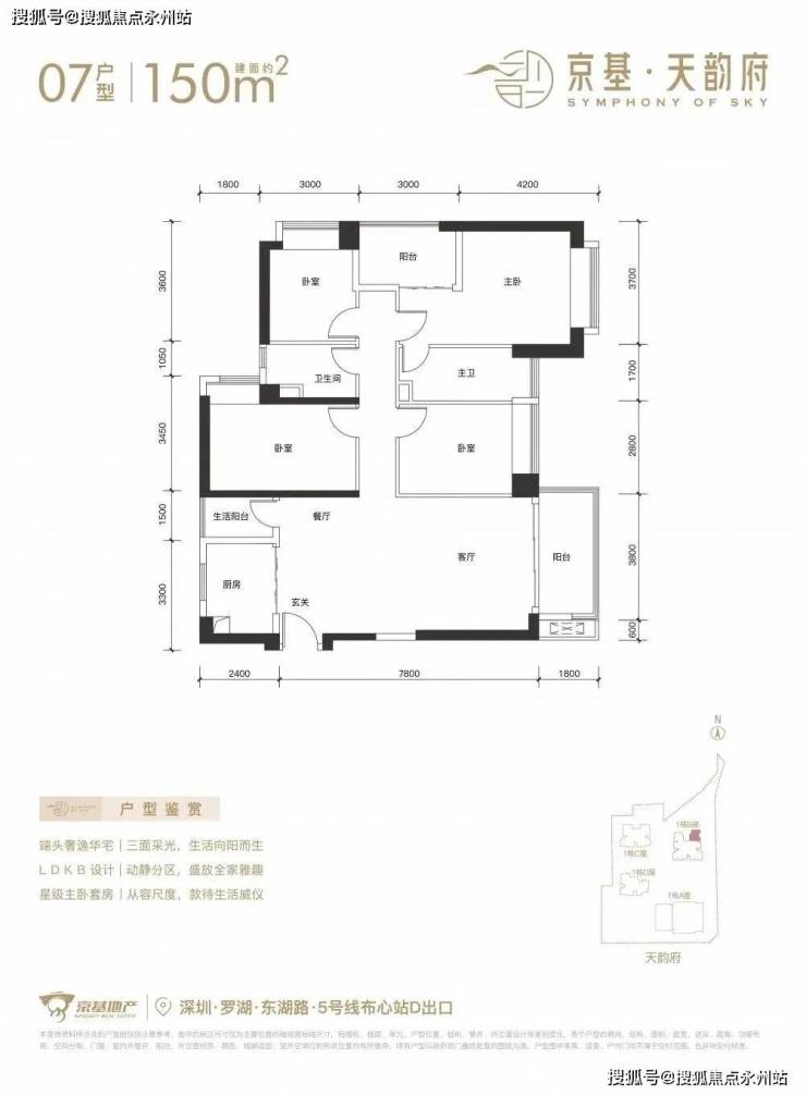 罗湖【京基天韵府】近期即将入市,已开样板房,将推出1栋B座,244套房源。面积有70-85㎡的2房1卫,105㎡的3房2卫,120-150-180㎡的4房2卫户型,价格方面预计6.6万/㎡均价。