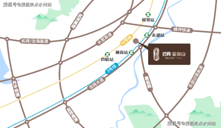 项目距离地铁线“横岗站”约960米,2站大运,可换乘14号线/16号线/深大城际(在建),距离最近坳背站,5站罗湖、7站福田,换乘11号线,4站可达后海。还临近龙岗大道,南坪快速,水官高速等交通干道,可快速通达深圳各大区域。