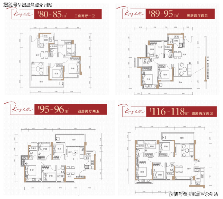 85-89㎡户型设计朝东或者南,并采用传统的竖厅布局,客厅开间3.5-3.6米,亮点为客厅正出的超大阳台设计,3个卧室空间也足够大,刚需上车还是不错的!