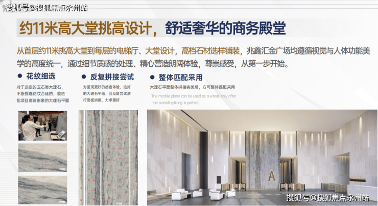 11m挑高+超320㎡奢阔全石材美学大堂,迪拜天空塔施工单位江河幕墙倾力打造打造全石材11m高山水美学大堂,320㎡入户大堂,23部专属电梯分区管理,尽展阔绰空间气度。