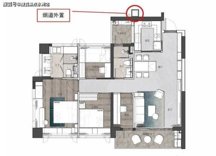 ▲ 图25 烟道外置,保证了厨房空间的完整