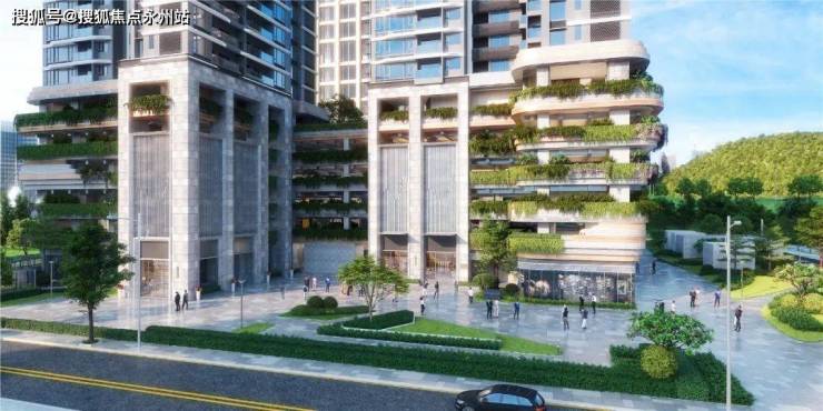 前海宸湾的地上 4层阳光车库,可以一览周边山景;与周边的葱翠山景呼应的车库四周悬挂绿植,极似新加坡建筑的垂直绿化场景。