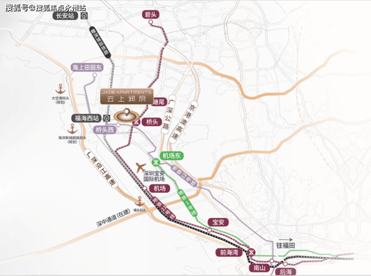 铁:广港深客运专线(规划中)、穗惠深城际铁路(福海西站直线距离约1500米、深圳机场站),延线可直达福田中心区。