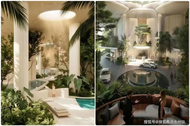 空中绿岛:中央社区花园搭载垂直绿化系统,构建“垂直生态舱”,搭配多层立体园林,让业主在繁华都市中也能享受自然绿意,契合顶豪人群对“生态居住”的追求。
