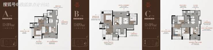 89㎡三房两厅两卫(共5种户型)