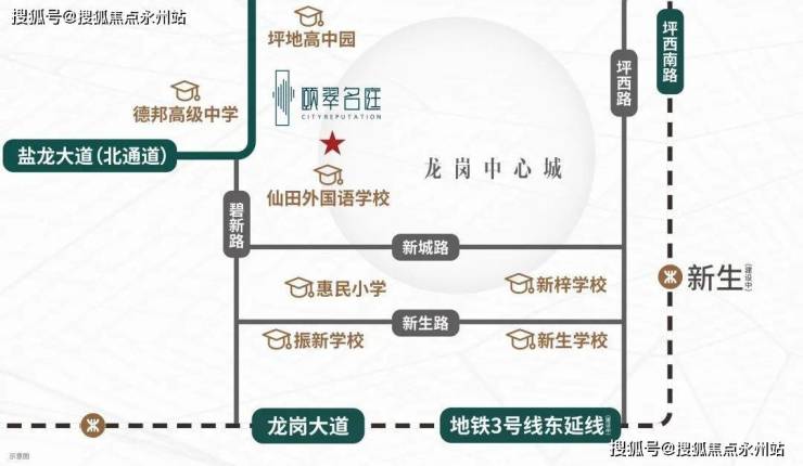 交通配套:3号线东延段(建设中)、21号线(规划中)新生站,步行距离约1.5公里左右,3号线预计2025年通车,距离项目最近的地铁站是(新生站),这个站点是个枢纽中心,有两条地铁进入,第一条是三号线东延线,这条线2016年已经动工,只有7个站,从目前的双龙地铁站延长到坪地六联,但由于拆迁难度大,开工一年后停工,重新申报走地下,目前已经重新复工建设,预计2025年通车。另外一条就是规划当中的21号线,从前海到坪地的一条快速线,这条线路规划从龙岗到前海只有十个站左右,动工时间待定。