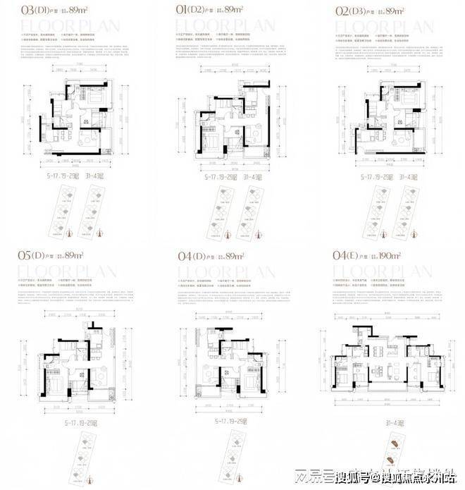 59-1栋结构类似之前的58栋,为3梯2户约255㎡和295㎡组合。