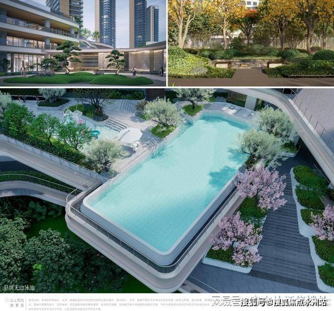 公区设施社区:规划约5000㎡中央园林,以“一轴三带五园”为设计理念,包含下沉式会所、恒温泳池、儿童游乐区、老年活动中心等功能区。会所配备健身房、瑜伽室、四点半学堂等,满足全年龄段业主需求。