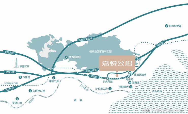 项目位于深圳市盐田区沙头角街道核心地段,地处深盐路与海山路交汇处,比邻盐田区府,属于盐田门户位置,衔接罗湖与盐田腹地,是深圳东部交通枢纽与生态宜居核心区的交汇点。