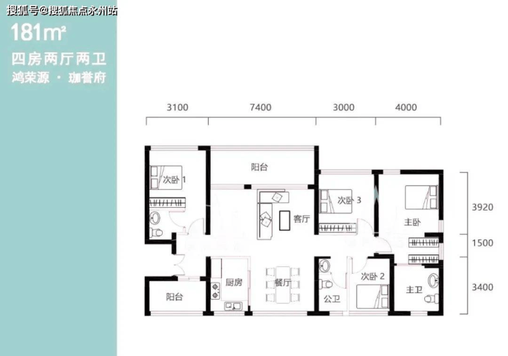 下面是项目户型图,76㎡的3房1卫,设计的竖厅格局,有西南及东南朝向;85㎡的3房2卫,设计有2个户型,1个是横厅格局,有东北及西北朝向,1个是竖厅格局,有东北,西南,东南朝向;95㎡的3房2卫,设计有2个户型,1个是竖厅格局,有西南,东南,东北,东向,南向,1个是横厅格局,有西北,东北,西向;98㎡的3房2卫,设计的横厅南北通透格局;106㎡的4房2卫,设计的东南向竖厅格局;155㎡的4房2卫,设计的双龙抱珠横厅格局,有西南向,南向;181㎡的4房2卫,设计的横厅南北通透格局。
