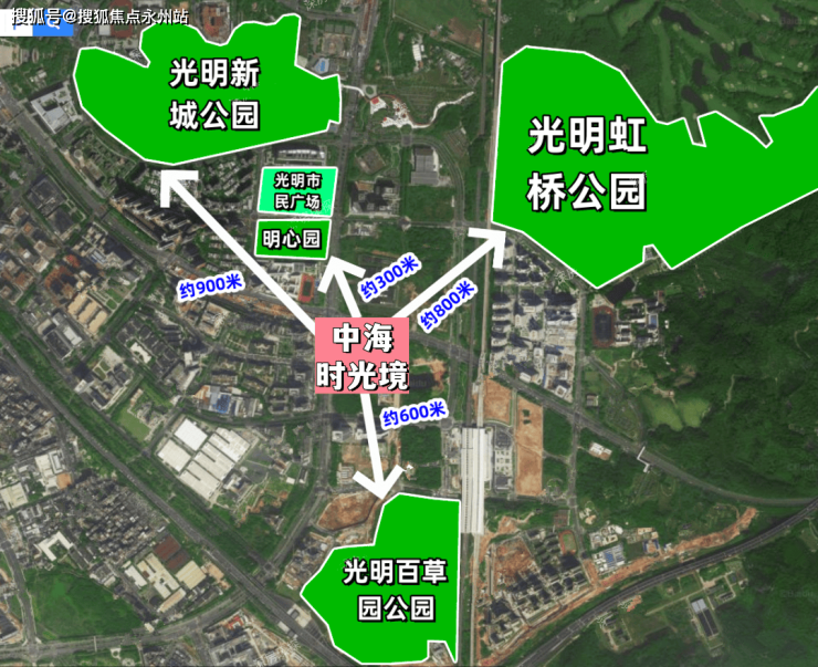 项目不仅位于凤凰城内,还据守着高铁新城片区,距离光明城站仅约300米。