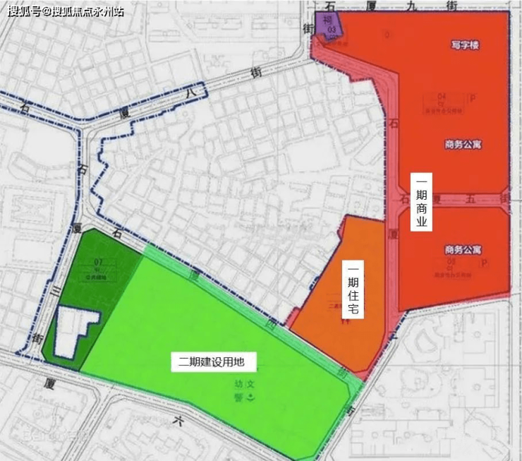 新天石厦铭苑总建筑面积162524.55㎡,计容建面129107.28㎡,其中商品住宅22902㎡、回迁住宅88698㎡、普通商业4161㎡、回迁商业1651㎡、幼儿园3600㎡以及1850㎡公共配套设施。