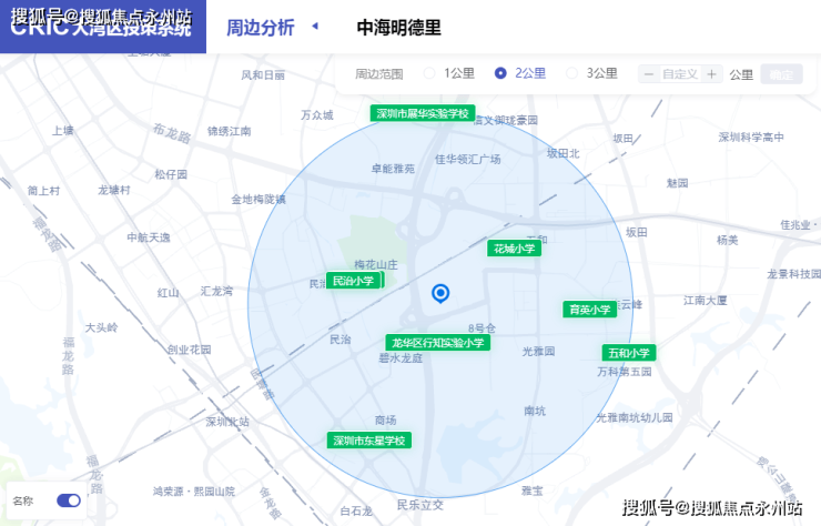 项目周边聚集华南实验学校、民治小学、育英小学、行知实验小学等学校。小区自带幼儿园,楼下(约20m)就是华南实验学校,公办九年一贯制,有53个班,现有2547名学生,2020年中考最高分586分,龙华排名第5,属于龙华名校区,车接车送不如目送,父母更放心。社区自带华南实验学校附属幼儿园。(深圳中海明德里售楼处电话:400-992-0669)