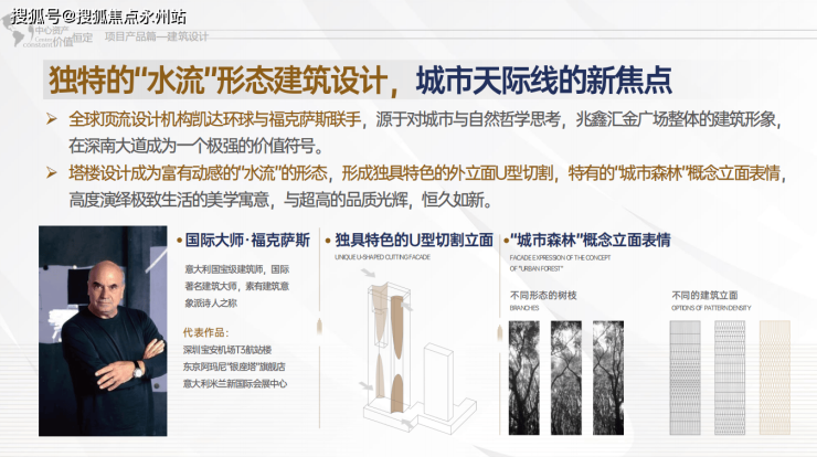 项目作为兆鑫地产的品牌奠基之作,秉持着“云端造极”的理念,携手全球顶级大师,意大利国宝级建筑师福克萨斯、香港著名室内设计师梁志天、台湾室内设计师程绍正韬、台湾室内设计师邱德光,每一细节精益求精,只为呈献无愧于时代的极致作品。