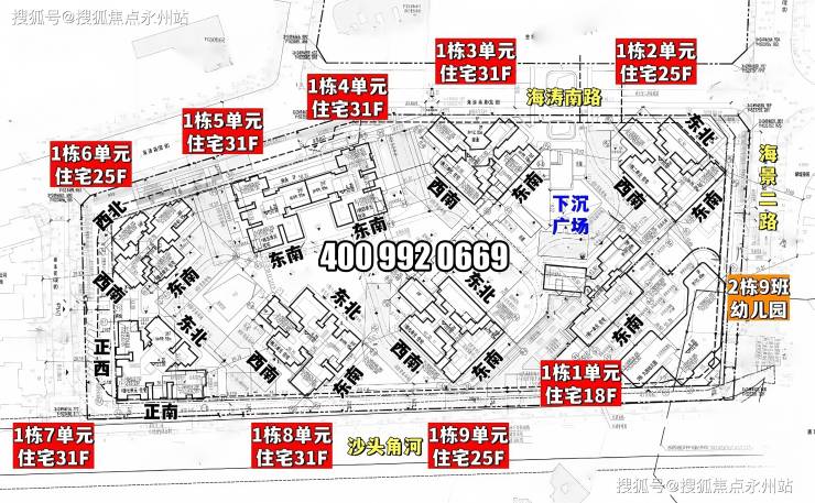 驭海隽府一期,总占地面积约3.01万㎡,总建筑面积约22.7万㎡,计容建筑面积约17.59万㎡,容积率5.27,绿化率40%,共由9栋18-31层高住宅组成,其中1栋1单元住宅18F,1栋2/6/9单元住宅25F,1栋3/4/5/7/8单元住宅31F,2栋是1所9班制幼儿园。(深圳盐田驭海隽府售楼处电话:400-992-0669)