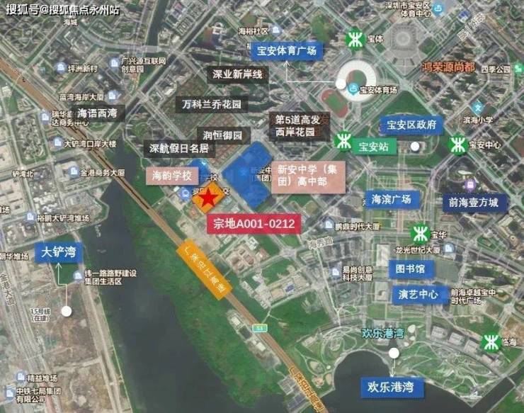 该地块位于宝安宝中片区,金科路与罗田路交汇处西南侧,北面是海韵学校、深航福利房深航假日名居,西面就是大铲湾,南面是湾区产业投资大厦,东面为新安中学(集团)高中部。