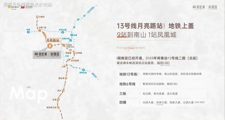 项目距地铁13 号线月亮路站(建设中)直线距离仅约600米,目前地铁一期北段已进入调试阶段,年内即将通车,月亮路站所在的二期北延段,在2025年光明区政府工作报告也明确全力推动今年底前建成通车。