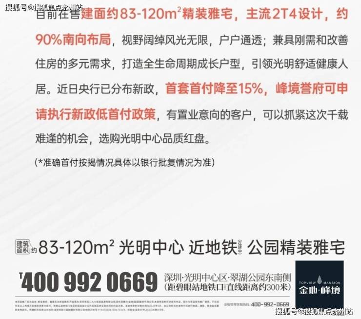如需了解更多详情,欢迎咨询光明金地峰境誉府售楼处电话400 992 0669,过来我们营销中心看房提前来电预约价格还能更优惠。