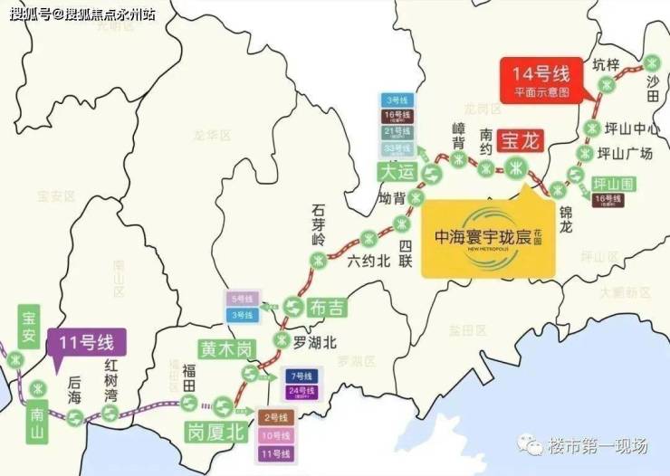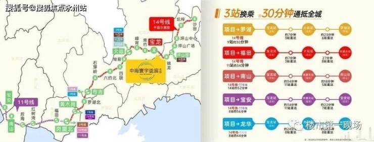 时速最高达120km/h的地铁14号快线(建设中),宝龙站三站大运,10站抵福田。