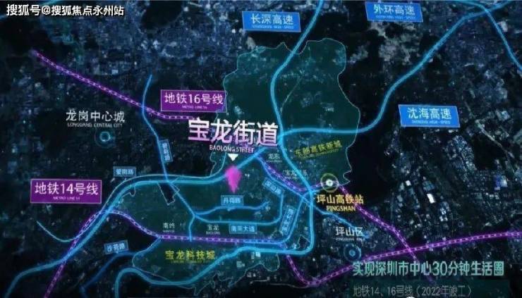 时速最高达120km/h的地铁14号快线(建设中),宝龙站三站大运,10站抵福田。家楼下的公交始末站,东部过境、坪盐通道、南坪快速等多条高速路通达全城程,坪山高铁站城市枢纽1小时大湾区都市圈。