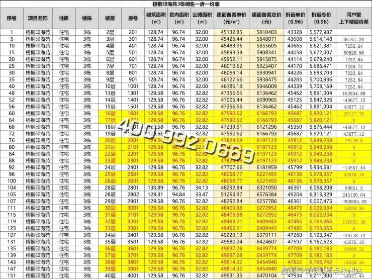 最低单价:304房,建面约102.2㎡,单价4.39万元/㎡