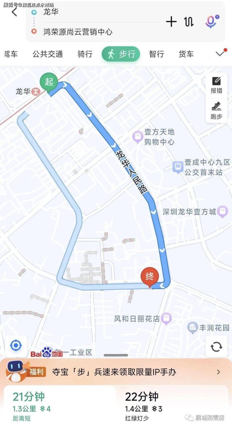 距离去福田的4号线龙华站1.3公里,步行21分钟,有点远了。