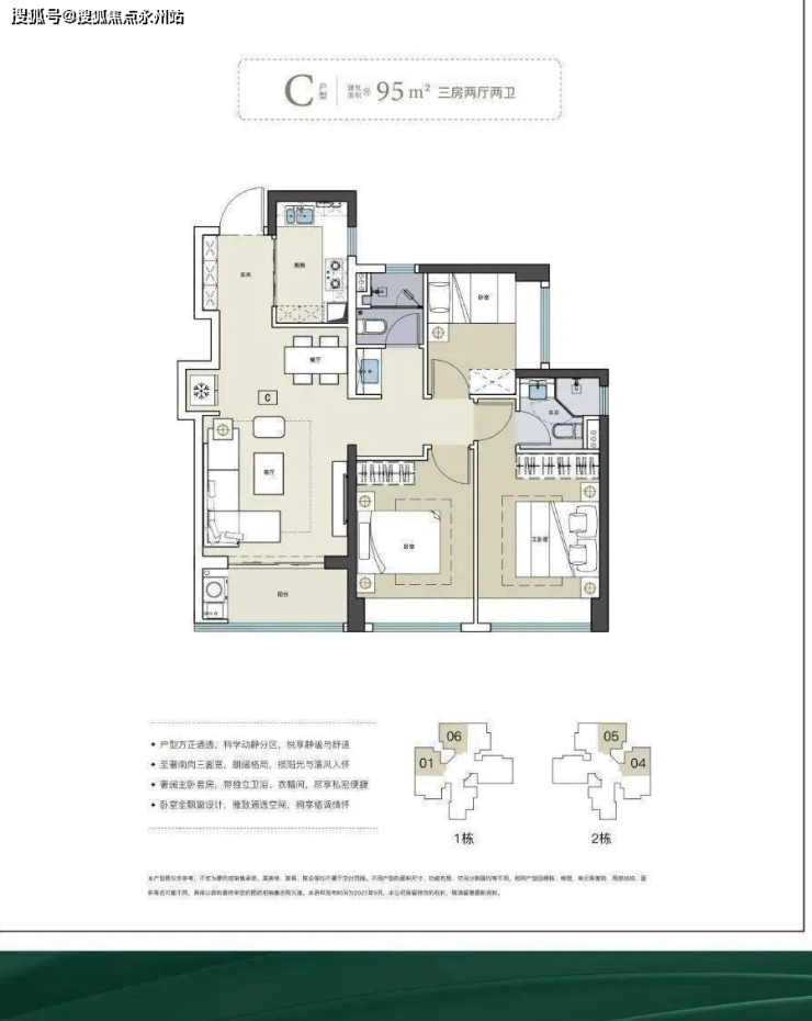 产品信息:建面约 75-95-120 ㎡ 3-4 房
