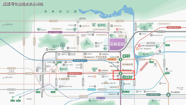 在轨道交通上,项目近邻16号线盛平站,同时周边还规划了地铁31号线:另外,在建的龙城枢纽站规划为地铁21号线。深惠城际线、塘龙城际线、地铁31号线四线交汇,届时项目可于此快速换乘通达全城。
