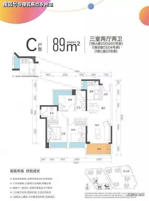 譬如可实现建面约70㎡及80㎡的带玄关三房、建面约100㎡的带主卫四房。