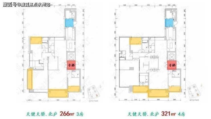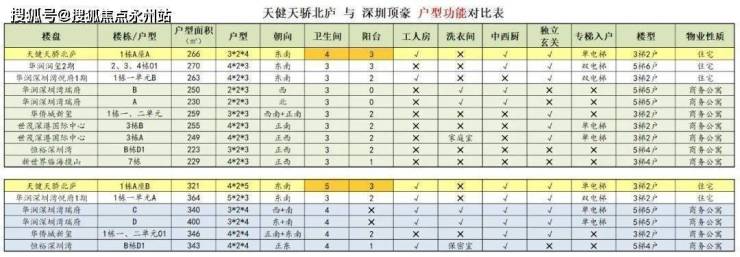 从“天健天骄北庐与深圳顶豪户型功能对比表”中,最抢眼的是天健天骄北庐楼王 266㎡和 321㎡两个大平层户型,均有 3个阳台。这是深圳大平层顶豪的最高纪录。