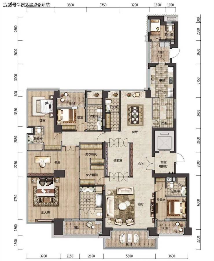 大平层住宅之所以是顶级豪宅,是其具备了高端生活所具备的各种便利,以及各种功能的使用空间。