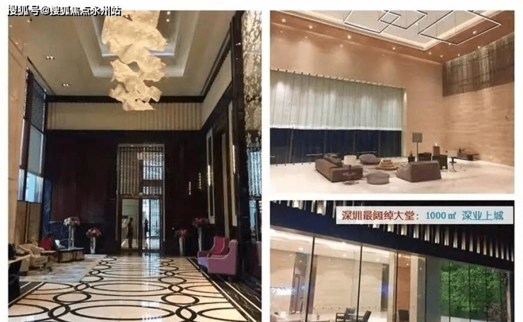 东海国际公寓首层大堂挑高 14米,恒裕深圳湾首层大堂挑高 11米,双玺“海之门”首层大堂挑高 10米,华润.幸福里大堂挑高 9米。