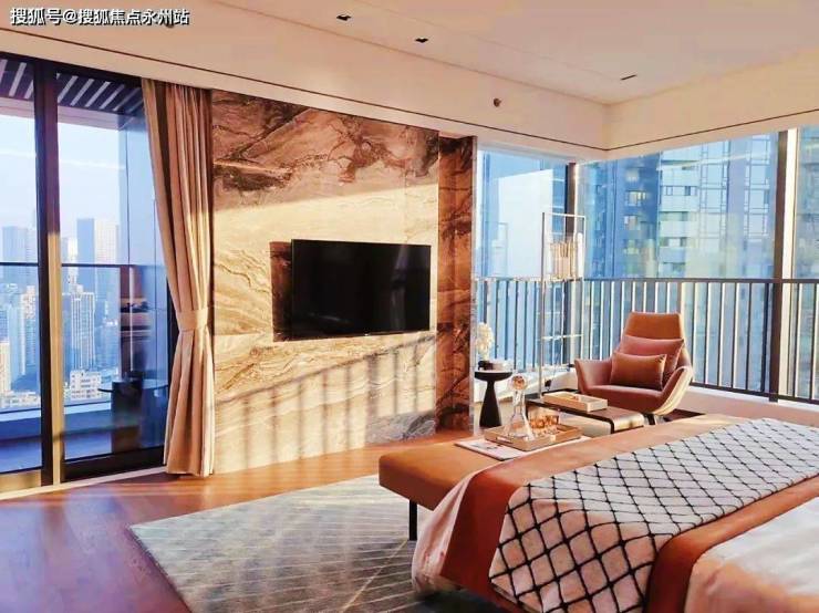 主卧套房极尽奢侈,“主卧+书房+主卫”约 70㎡,10㎡衣帽间内分设男、女主人衣帽间,超 10㎡双脸盆主卫,270度落地玻璃窗,南向景观阳台。