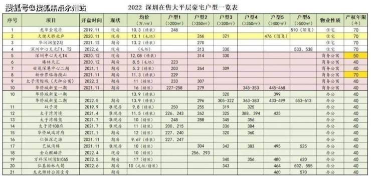 据“2022 深圳在售大平层豪宅户型一览表”,在深圳目前在售的 21个项目中,17个是商务公寓和商办公寓(15个产权 40年),商务公寓、商办公寓约占深圳大平层豪宅产品的 80.9 %。