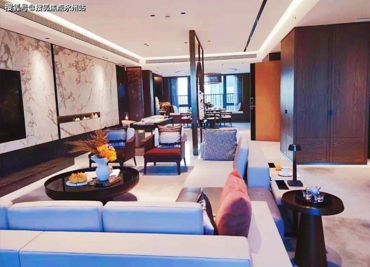 321㎡ 4房户型样板房的起居空间达 100㎡,主卧套间 60㎡,其空间尺度之奢侈令人过目不忘。