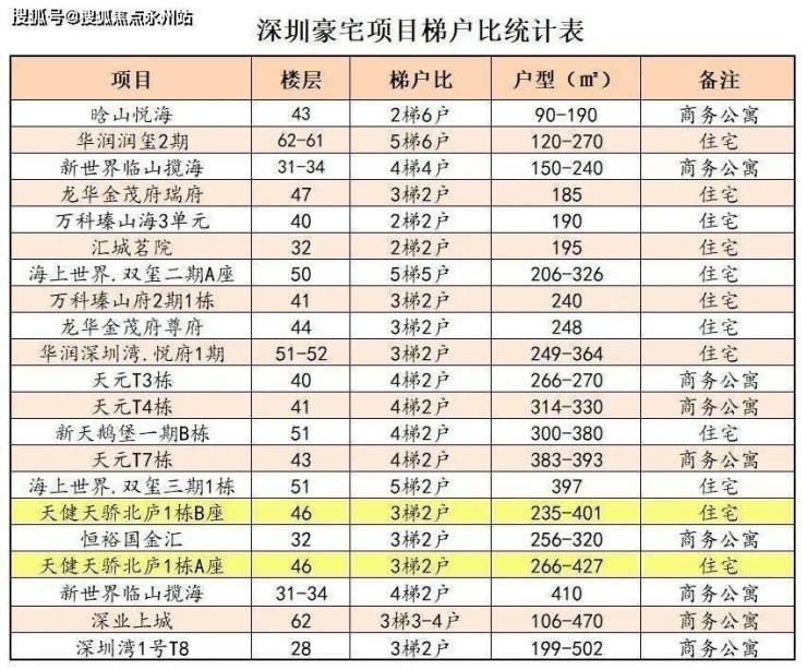 深圳大平层豪宅以梯2 的板楼为主,梯4 以上的塔楼不甚理想。