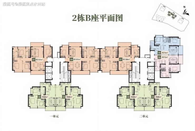 户型分布:主推72-138㎡二至四房,覆盖全生命周期需求:
