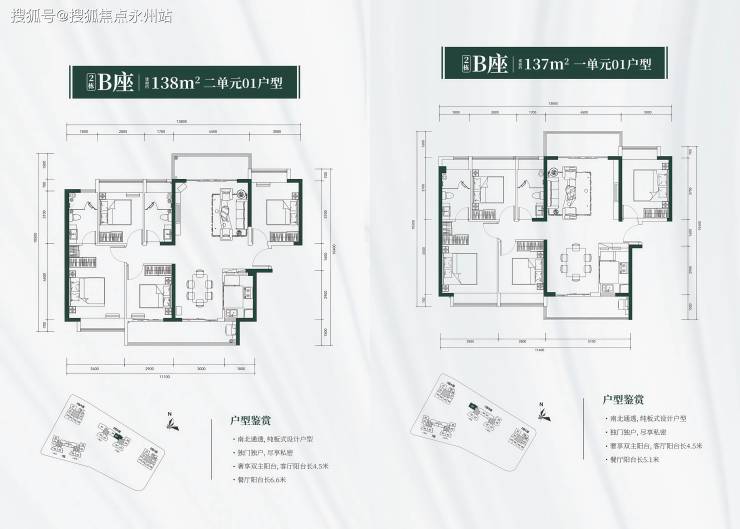 2栋B座一单元01/04户型、二单元01户型:137-138㎡四房两厅两卫(南北通透),仅36套,占比约15%,为社区稀缺改善型产品。