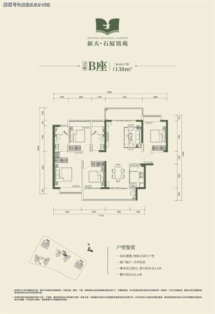 2栋B座一单元01、04户型、2栋B座二单元01户型:面积约为137-138㎡的4房2厅2卫;