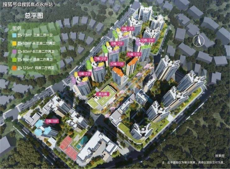 项目占地约7.4万平,总建面约29.9万平,其中住宅建面约19.1万平,容积率仅为2.91,绿化率35%。规划户数1700户,约73-125㎡三至四房小高层、洋房。