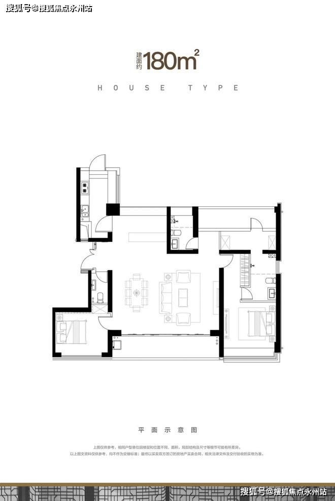 另外180㎡的户型同理,其真实户型是四房三卫南北通大平层。