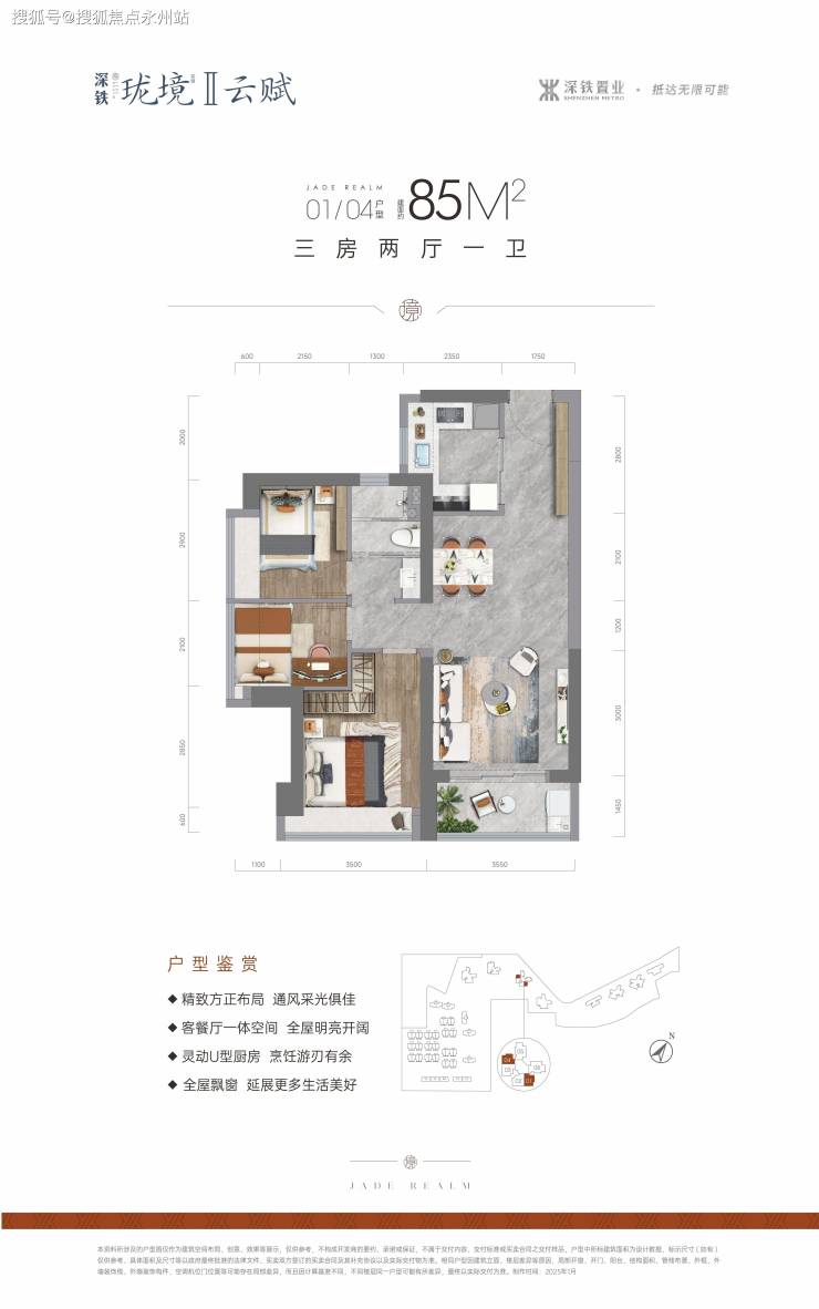 85㎡三房一卫:419万起,单价约4.9万-5.4万/㎡。