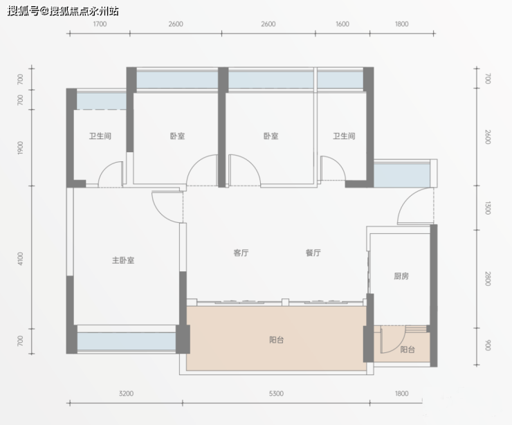 建面约89㎡3房2厅2卫:约5.3米开间大横厅,阔绰气派;主卧约3.2米宽飘窗;南向双阳台,兼得美学与实用。
