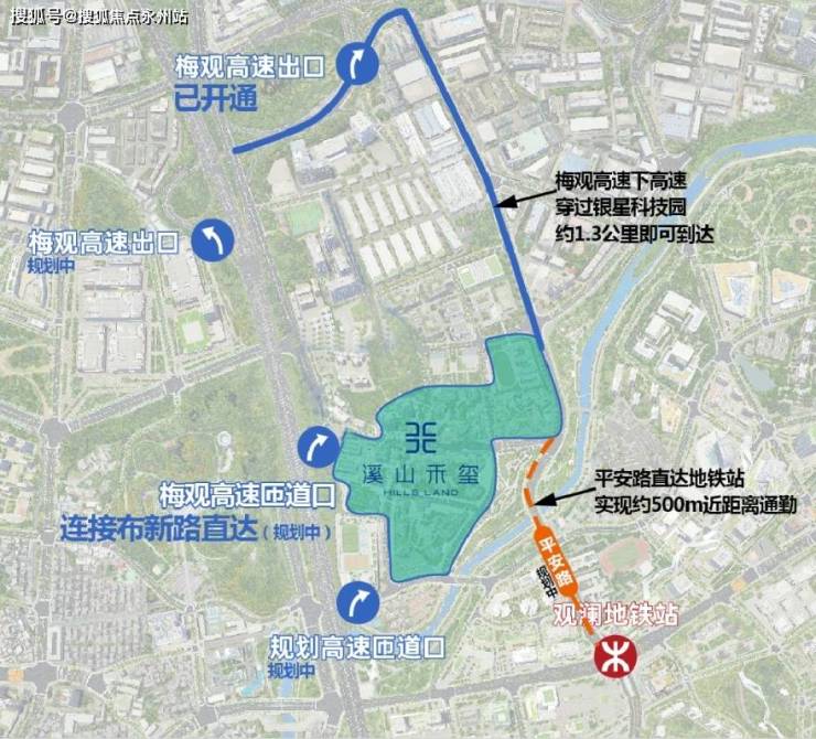 高速路网:梅观高速、机荷高速、外环高速形成 “井” 字形快速通道,15 分钟可达深圳北站,30 分钟覆盖东莞松山湖。