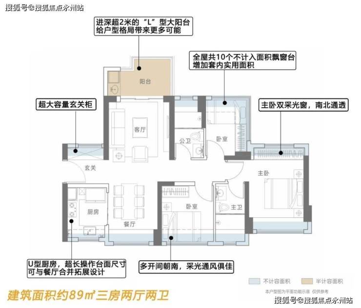 89㎡的3房2厅2卫,折后总价221-243万/套,单价2.48-2.73万/㎡。