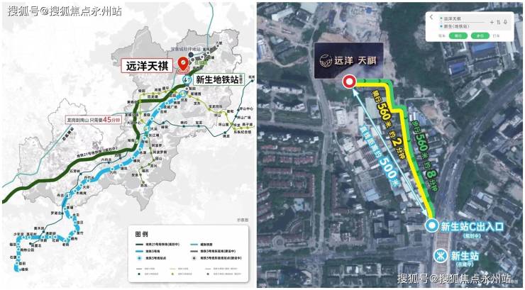 项目距离地铁3号线东延线(在建中,预计2025年通车)和21号快线(规划中)双轨交汇“新生站”(建设中)直线距离仅约500米(百度地图测距),是片区离地铁最近的在售项目,未来还有深惠城际前海保税区至坪地段,全长58公里,时速160公里/小时,以后从项目到南山、前海也很方便快捷。(深圳远洋天祺苑售楼处电话:400-992-0669)