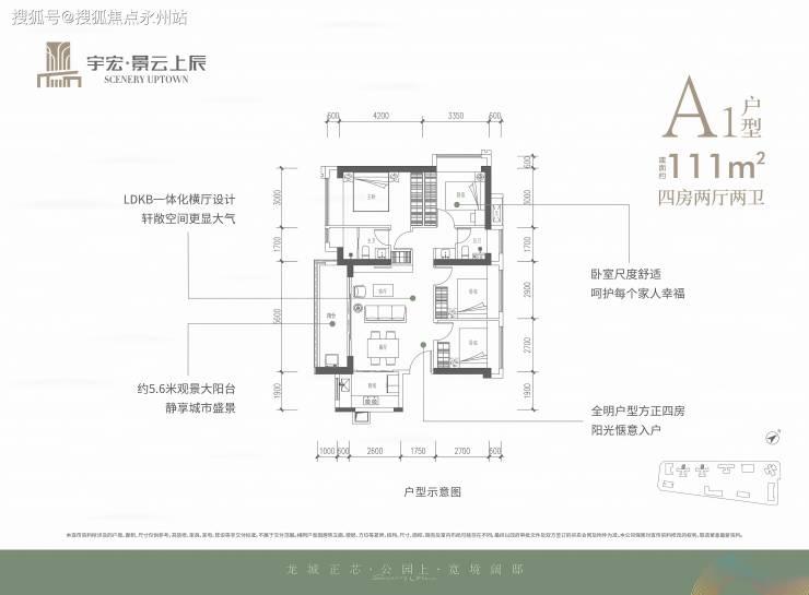 111㎡四房:折后总价 460 万 - 570 万,单价 4.16 万 - 5.1 万 /㎡。