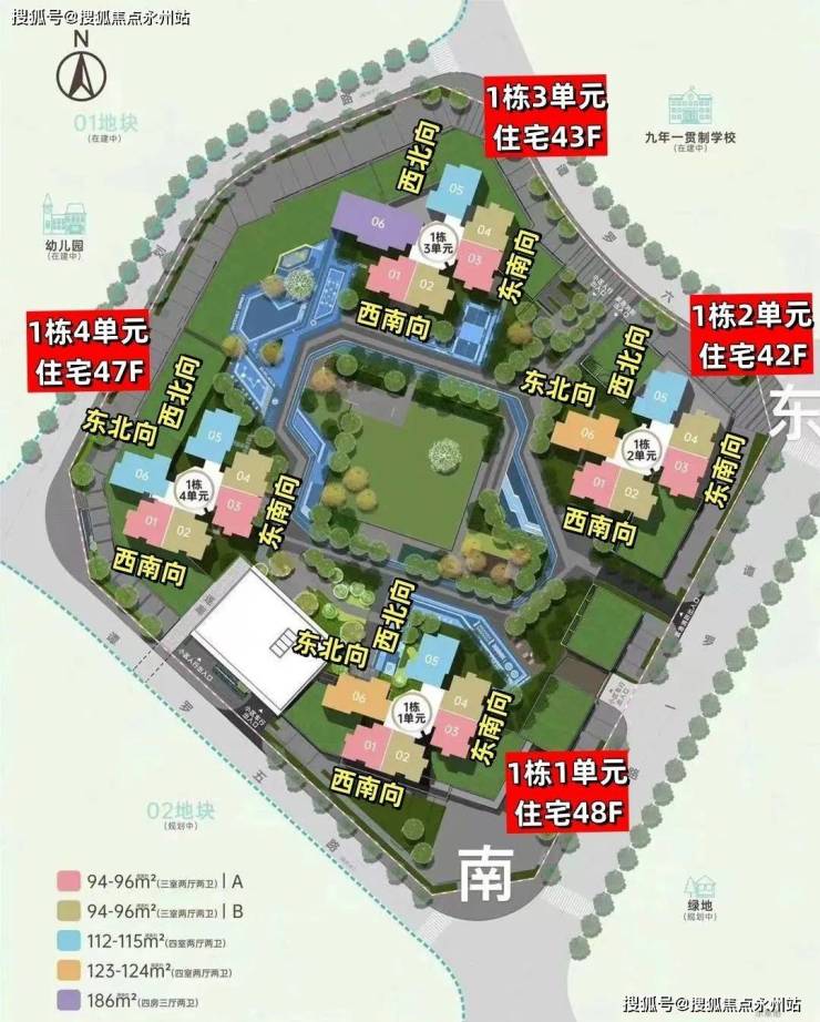 项目共由1栋4个单元总高42-48F的住宅组成,其中1栋1单元住宅48F,1栋2单元住宅42F,1栋3单元住宅43F,1栋4单元住宅47F。