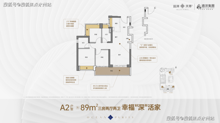 阳台:客厅连接次卧,打造5.9米长的大阳台,视野开阔。